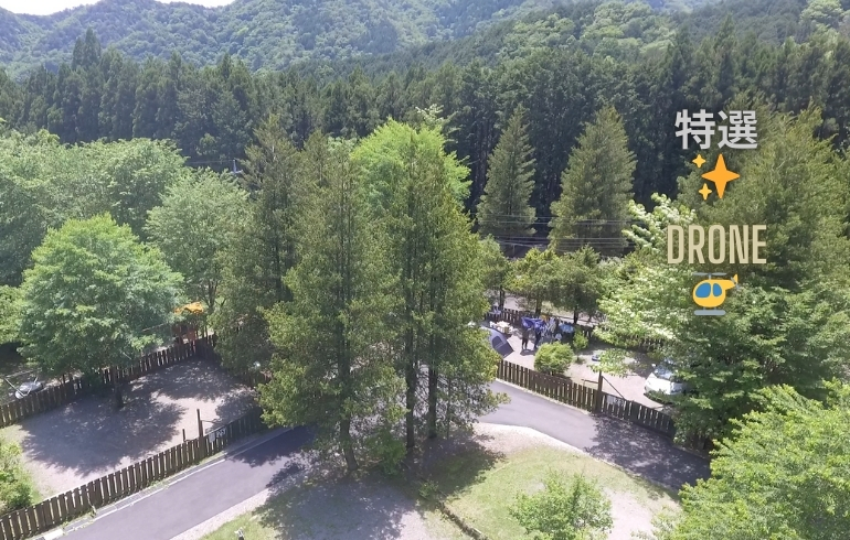 空から見ると一目瞭然ですが、ファミリーテントとタープを張っても全く余裕のスペースがありますっ。リードなしで走り回れるため、本当にのびのびとワンちゃんも過ごすことが出来るようになっているんですね。キャンプ場という以上に、山の中に”犬好きのビレッジ”が現れたという感じ。徹底したコンセプトが反映されています。
